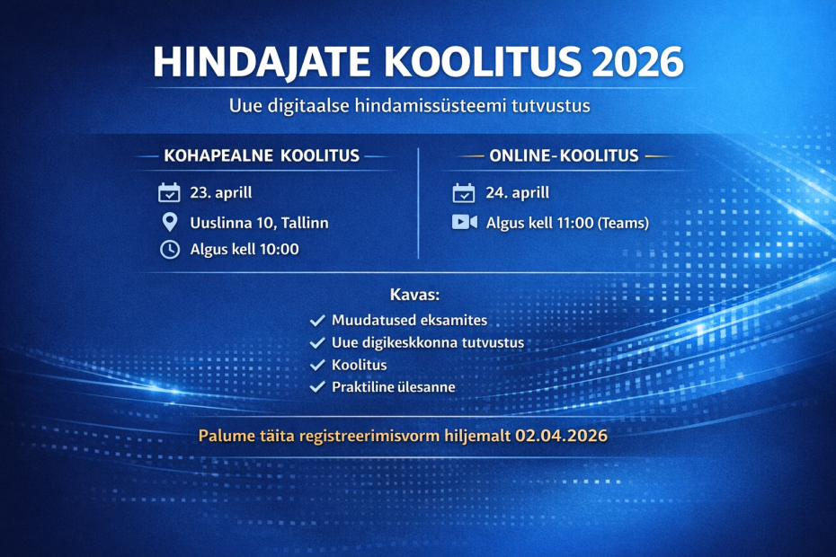Head Autokutseõppe Liidu ja kuteekamite… Read More »2026 digitaalse hindamiskeskonna infotunnid